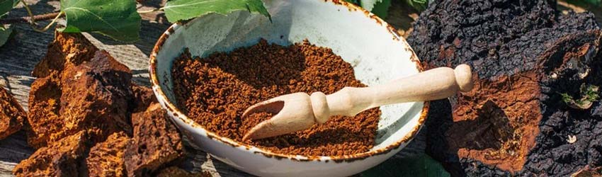 Chaga (Inonotus obliquus) is a medicinal mushroom that grows on birch trees, traditionally used in Russia and other northern regions for its immune-boosting and antioxidant properties.